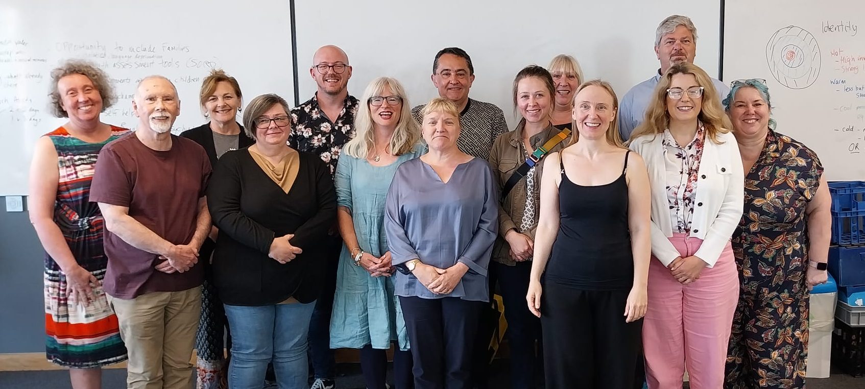 Left to right: Jacqui Bond, Paul Redfern, Anne Silman, Sarah Thomas, Rob Wilks, Sara Rhys-Jones, Julia Terry, Martin Griffiths, Whitney Fleming, Cath Booth, Anouschka Foltz, Christopher Shank, Helen Rose-Jones, Ceri Harris